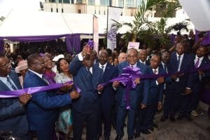 Le plateau Joss de Bonanjo a servi de cadre, le samedi 19 octobre 2024 à l’inauguration du nouveau siège social de CCA Bank. Une méga infrastructure de 2 bâtiments de 15 étages et 8 étages. La cérémonie a été présidée par le ministre des finances Louis Paul Motaze accompagné de plusieurs autres personnalités