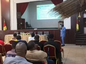 Par ailleurs , le Professeur Antoine de Padoue Nsebe, de l’Université de Dchang, a animé une session sur le thème “Approches terrain : enquêtes auprès des populations”, expliquant de manière pédagogique les différentes méthodes d’enquête utilisables pour recueillir des informations auprès des populations, leurs spécificités et leur traitement pour une utilisation efficiente. Il a notamment développé les méthodes qualitative (du particulier au général, basée sur des entretiens avec des personnes ressources) et quantitative (du général au particulier, basée sur des questionnaires administrés à un échantillon représentatif de la population). Enfin, Oscar Alain Mbella, personnel de la CUD, a présenté un exposé sur le thème “Diagnostic territorial : méthodes et contextes dans les villes d’Afrique centrale”, suscitant des échanges et des discussions intéressantes entre les participants.