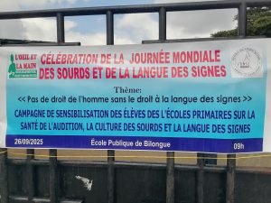 Le vendredi 26 septembre 2025, l’École publique bilingue de Bilonguè, à Douala 3e, a vécu un moment hors du commun. Ce jour-là, une campagne d’initiation à la langue des signes et à la prévention auditive y a été organisée. Portée par l’association L’Œil et la Main et soutenue par le Centre Multifonctionnel de Bépanda (CMB), cette initiative redéfinit l’espace scolaire comme un véritable levier d’inclusion, à l’image d’une ville qui fait de sa diversité une richesse collective.